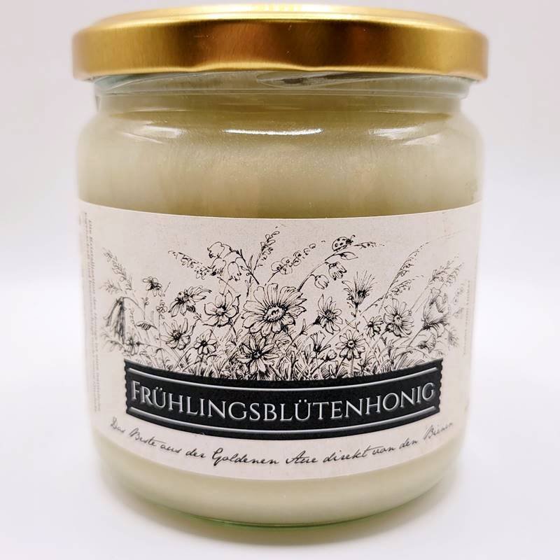 Frühlingsblütenhonig ist ein milder, oft feincremiger und streichzarter Honig aus der ersten Ernte (Raps, Löwenzahn, Obstblüten). Er ist hellgelb bis weißlich, süß-fruchtig im Geschmack und durch seinen hohen Glucoseanteil sehr beliebt als Familienhonig. Er kristallisiert schnell und ist ideal als Brotaufstrich oder zum Süßen.